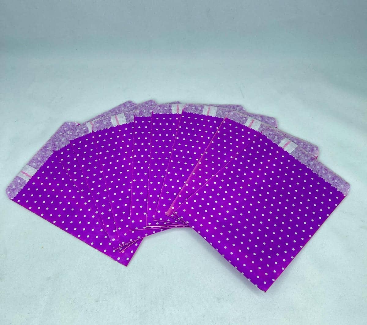 ซองกระดาษลายจุด สีม่วง ขนาด 5×7 นิ้ว (กว้างxยาว)