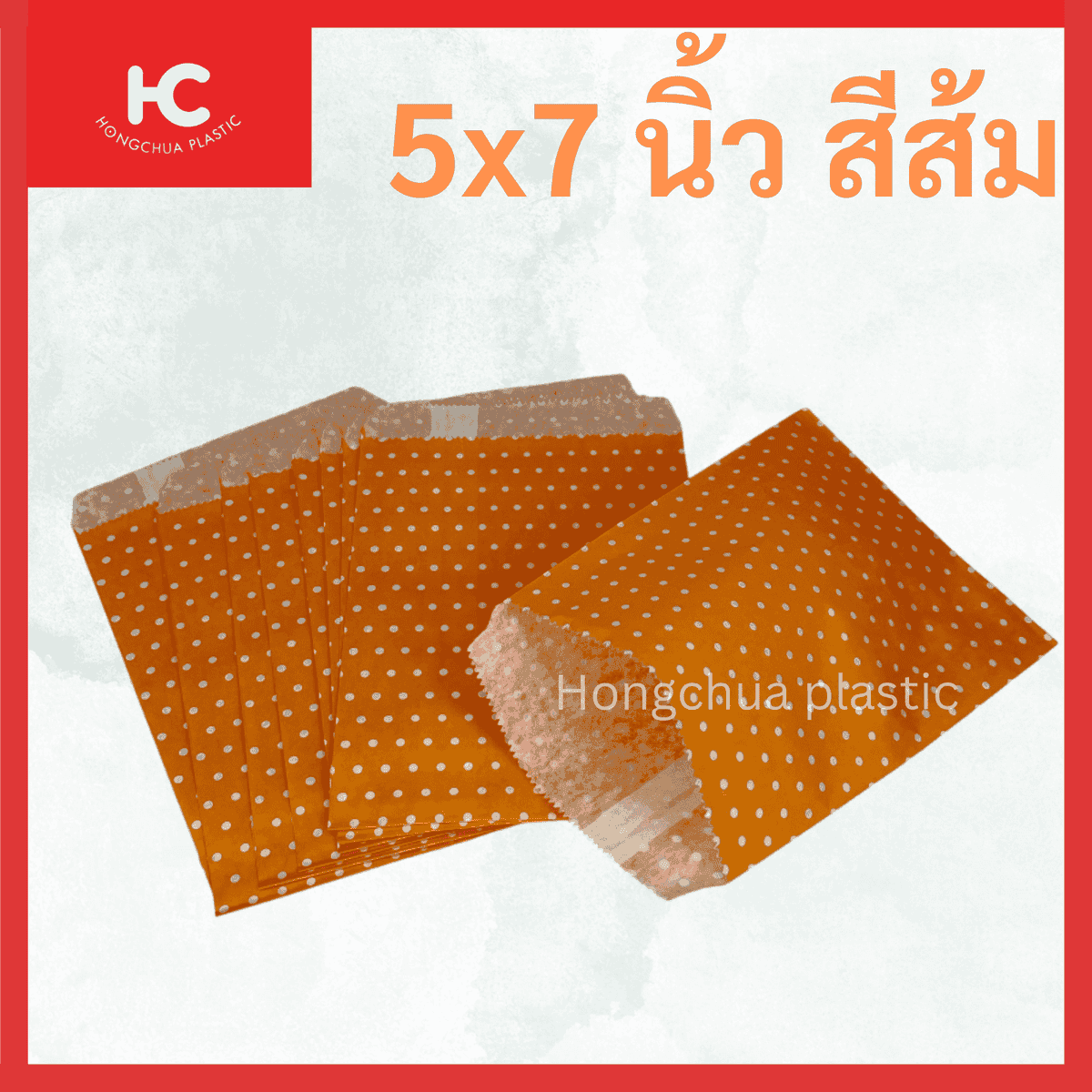 ซองกระดาษลายจุด สีส้ม ขนาด 5×7 นิ้ว (กว้างxยาว)