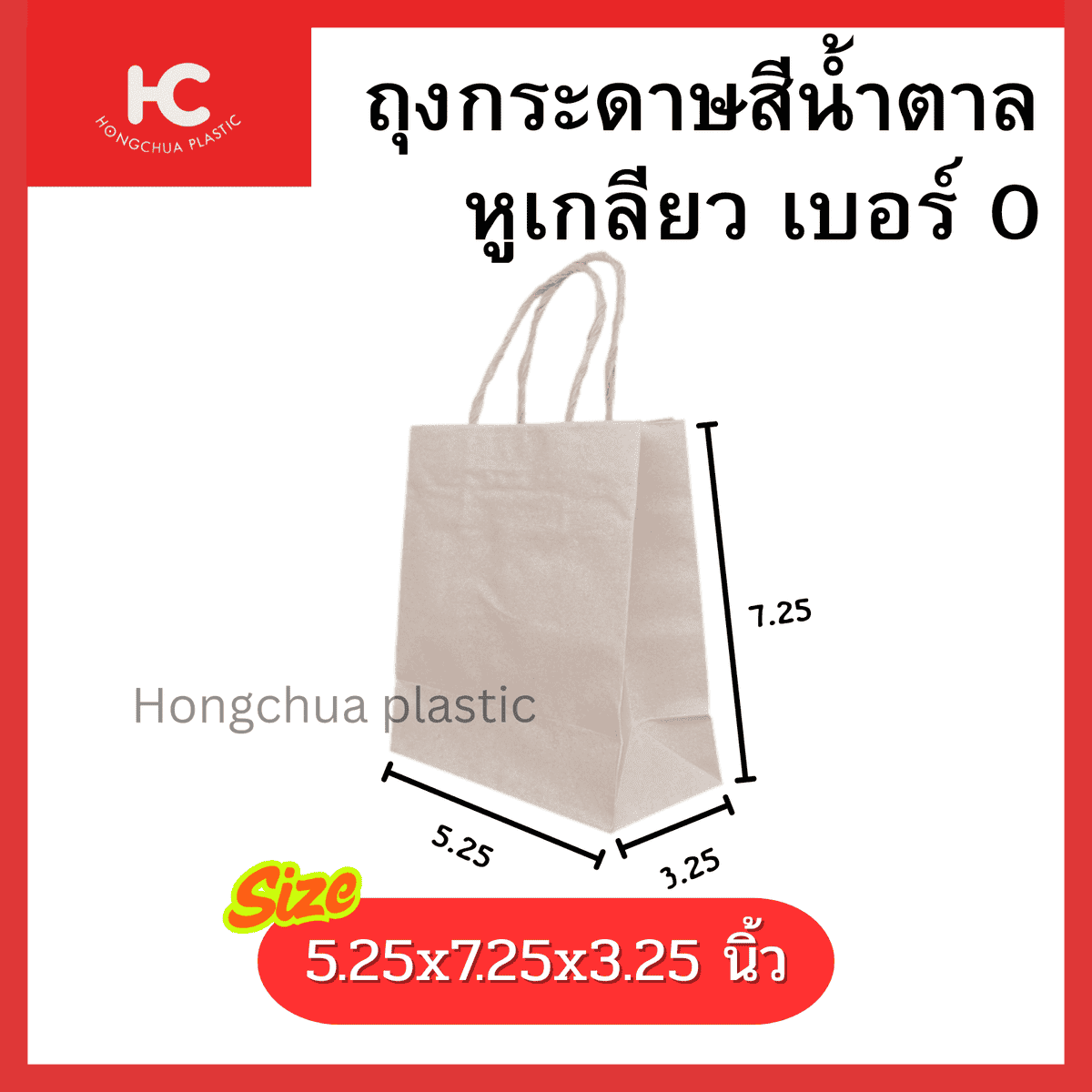 ถุงกระดาษหูเกลียว เบอร์ 0 ขนาด 5.25×7.25×3.25 นิ้ว
