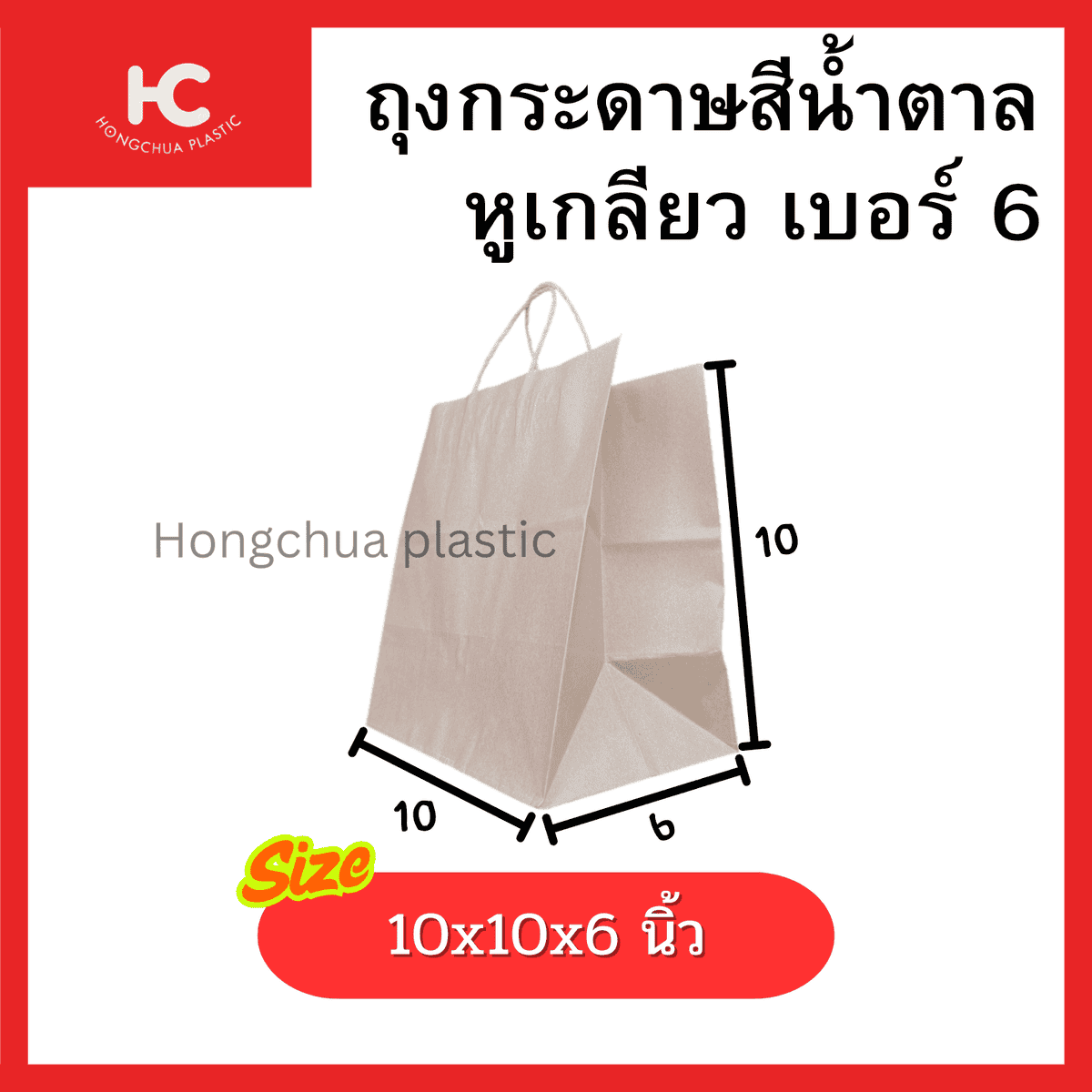 ถุงกระดาษหูเกลียว เบอร์ 6 ขนาด 10x10x6 นิ้ว