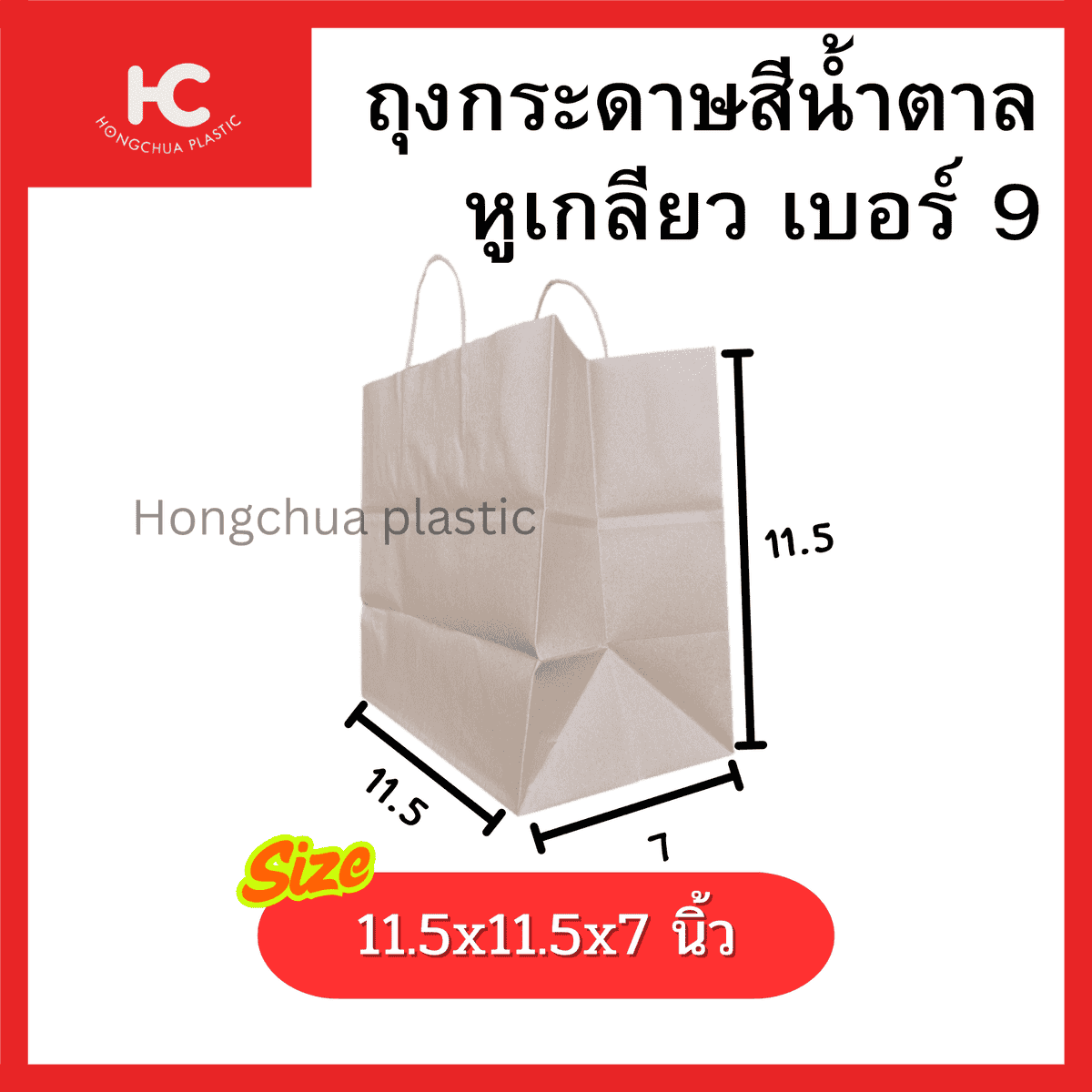 ถุงกระดาษหูเกลียว เบอร์ 9 ขนาด 11.5×11.5×7 นิ้ว