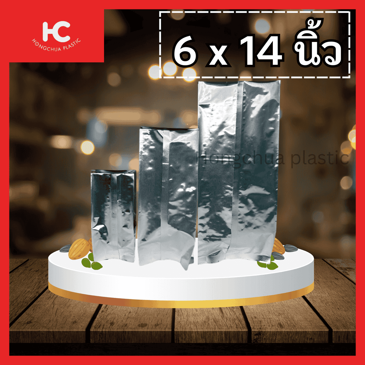 ถุงฟอยล์พับข้าง ขนาด 6 x 14 นิ้ว (แพ็คละ 100ใบ)